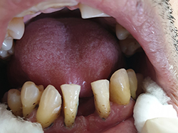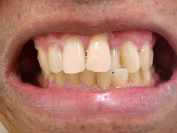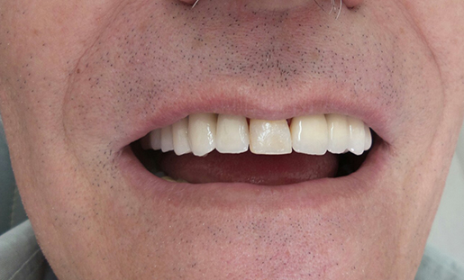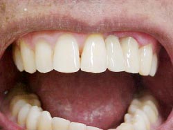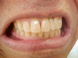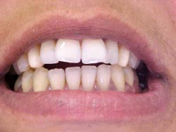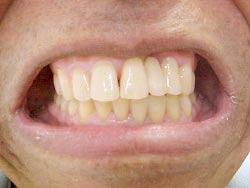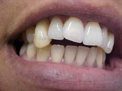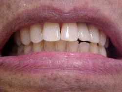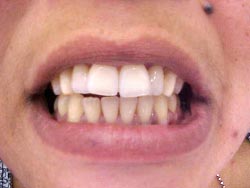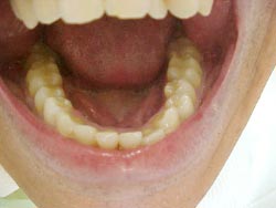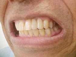 Foi realizado desgaste seletivo nos pré e molares para dar uma melhor oclusão. Paciente melhorou seu aspecto estético em duas sessões e já mastigando melhor os alimentos.